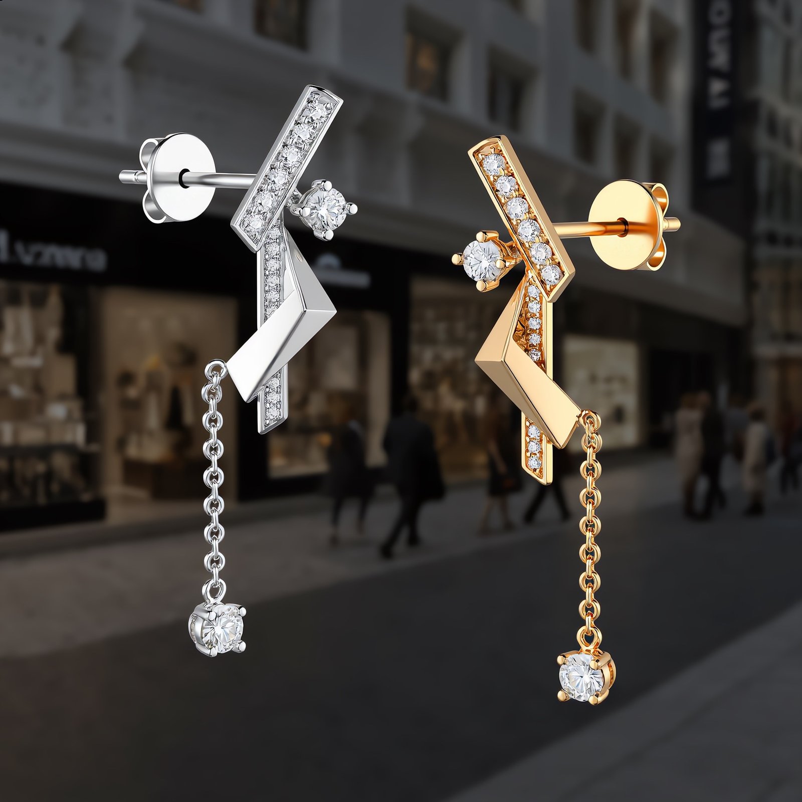 Prism, Faceted Cadence 18K gold inlaid cultivation diamond earrings design concept focuses on multi-faceted self-expression, shining freely. Main stone 0.20ct, secondary stone approximately 0.10-0.40ct, fashionable, personalized, versatile
