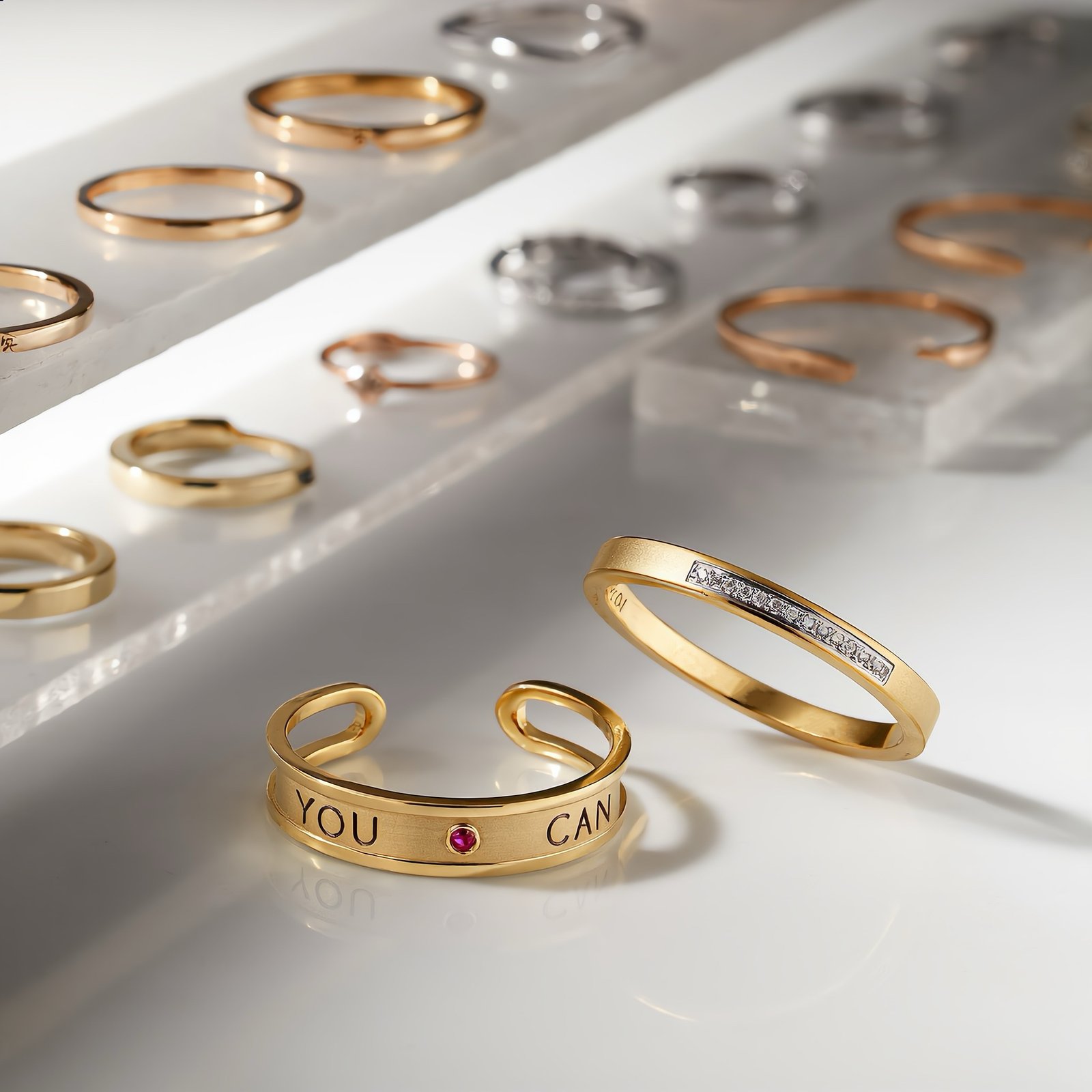 18k Yellow Gold Ruby Couple Ring The engraving of “YOUCAN” on the face of the ring bears witness to the commitment to marriage The ring arm is hollowed out to highlight the uniqueness of the ring