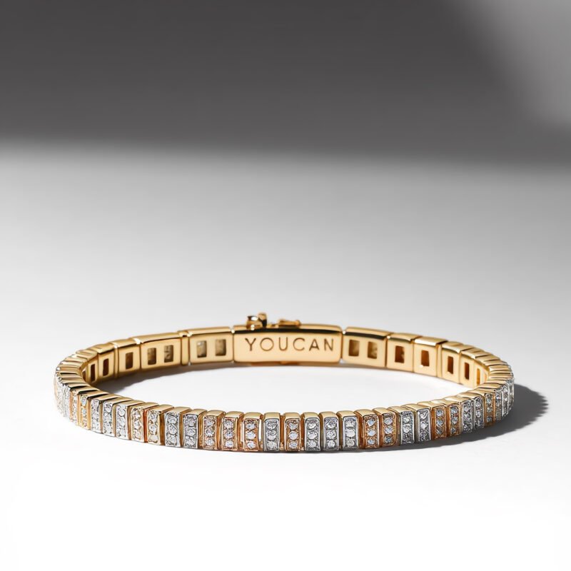9k gold tricolor interwoven bracelet (symbolizing diverse self), each buckle is set with cultivated diamonds