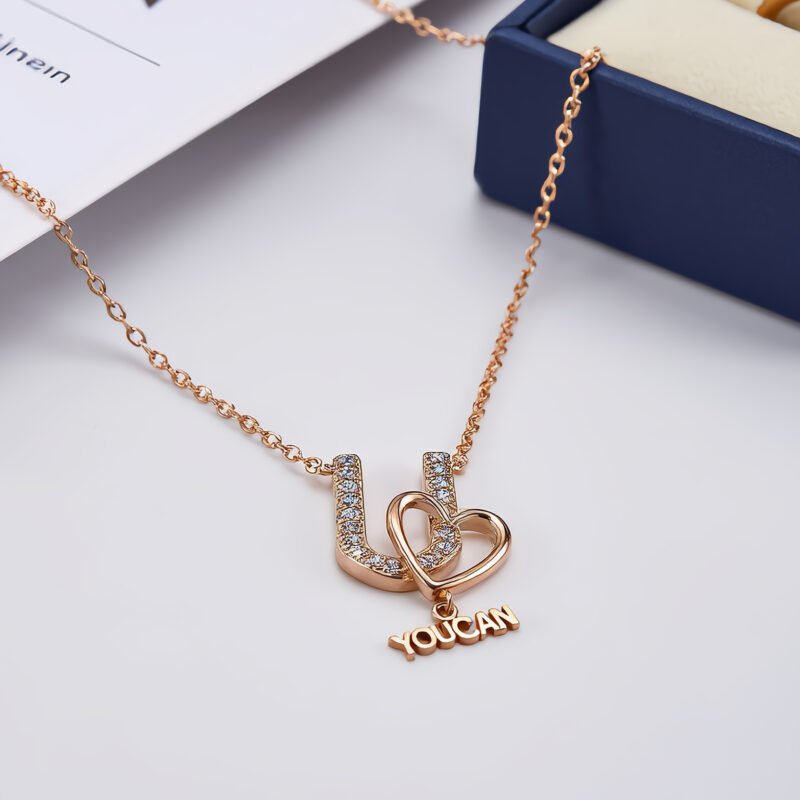 The necklace is made of 18K rose gold color, with the letters U and C selected for combination and inlaid with tiny cultivated diamonds to make the necklace shine brightly
