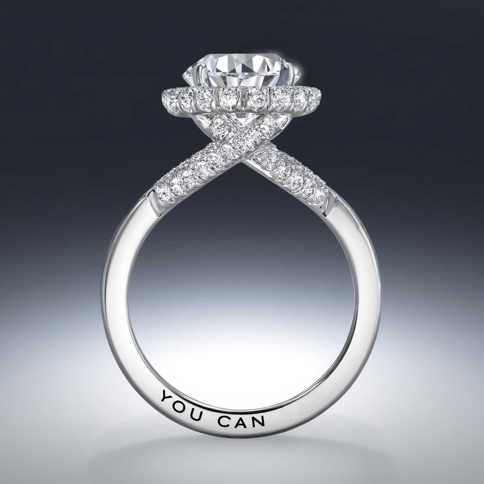 The ring is made of 18K white gold inlaid with 1 carat cultivated diamond. The arm of the ring is made with a cross design, making the ring style unique